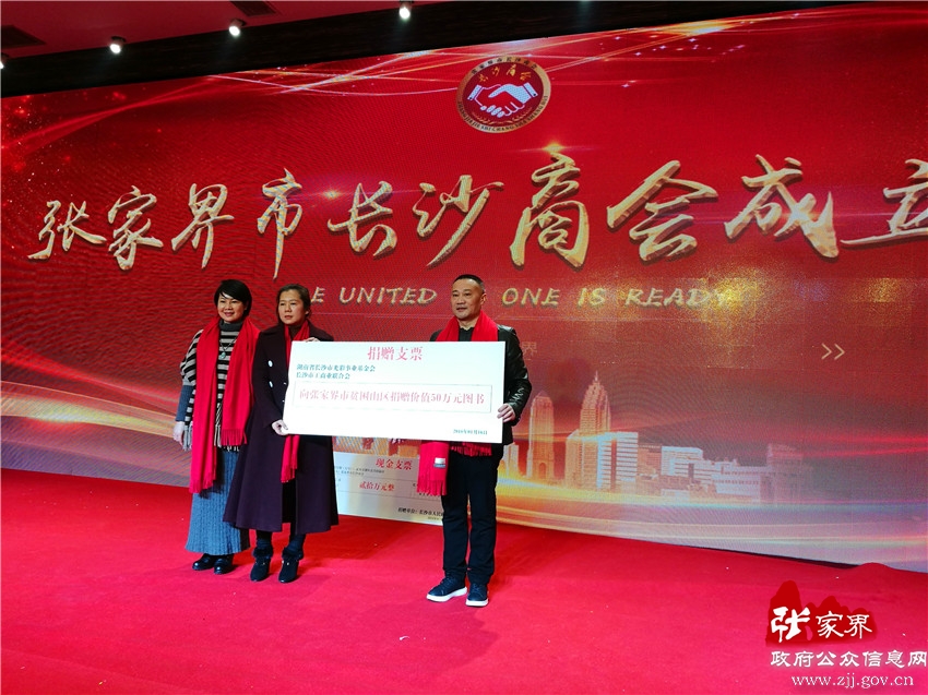 成立大会上,还对会长单位,执行会长单位,常务副会长单位,副会长单位,理事单位进行了授牌。湖南长沙光彩基金会、长沙市工商联向我市贫困山区捐赠价值50万元的书籍,张家界市长沙商会及商会会员捐赠了25万元的精准扶贫资金。