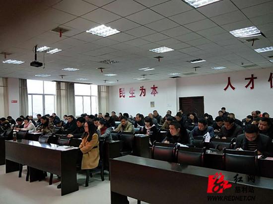 为进一步全面贯彻落实湖南省人力资源和社会保障厅、湖南省财政厅、湖南省扶贫开发办公室联合发文的《关于贯彻落实就业扶贫实施意见的具体操作办法》(湘人社发〔2017〕100号)文件精神,元月19日,慈利县人力资源和社会保障局召开慈利县2018年就业扶贫工作推进会。县政协副主席、县扶贫办主任周毅出席会议,各乡镇政府和新城区管委会分管劳动保障和扶贫工作的负责人、乡镇站长、信息采集员参加会议。