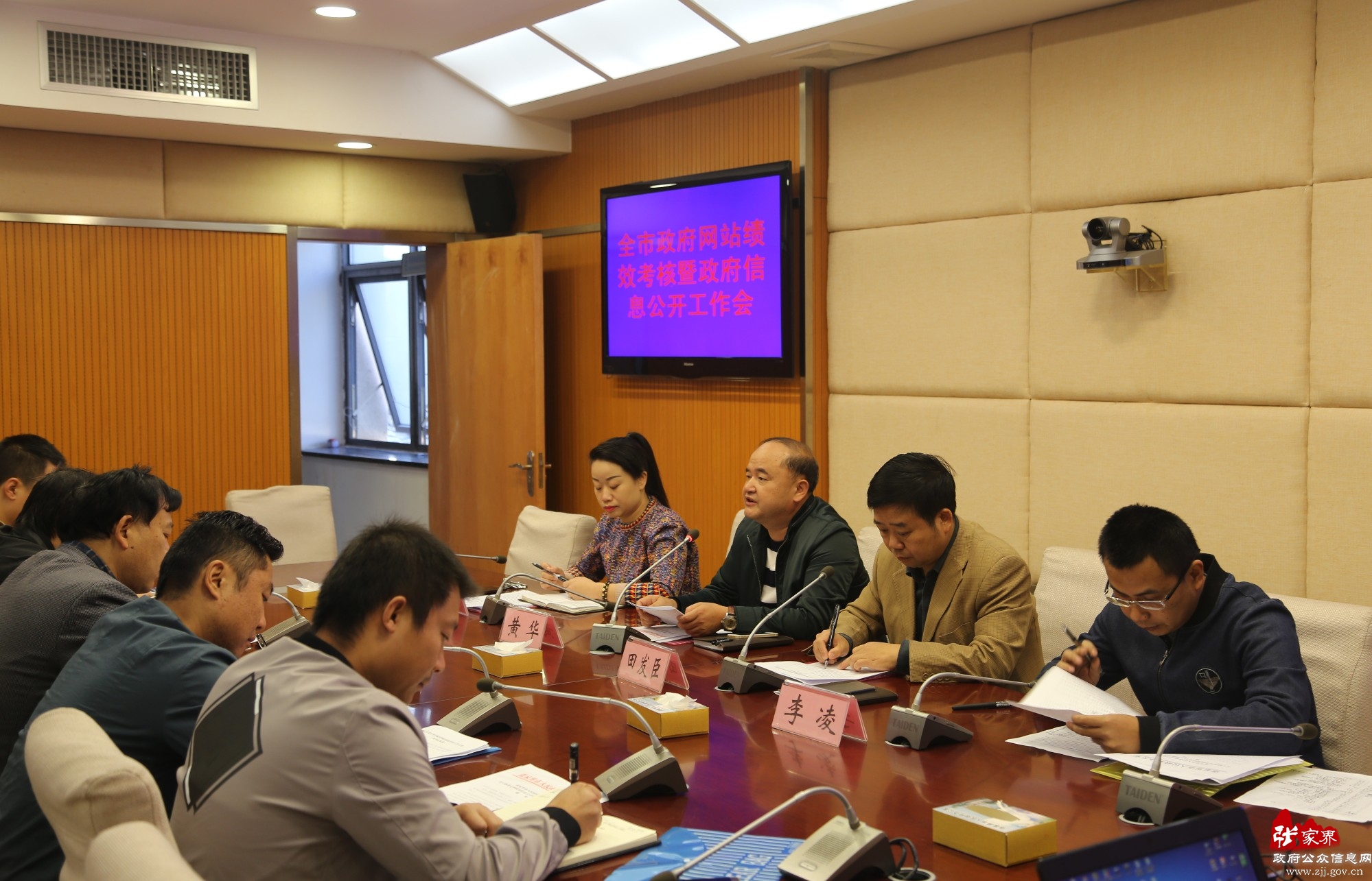 会议由市政府信息中心主任田发臣主持,市政府副秘书长黄华出席会议并作了讲话。市信访局、市财政局、市工商局等单位以及永定区、武陵源区、慈利县、桑植县共56个单位参加会议。