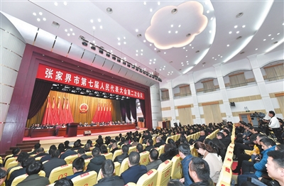 大会会场。本报记者 邵颖 庹兴亮 摄 会议应到代表305名,因事因病请假15名,实到代表290名,符合法定人数。本次会议的执行主席虢正贵、余怀民、吴名凤、陈红日、羿宝明、吕毅、朱用文、向锦云、曾癸银在主席台前排就座。 在主席台就座的还有刘革安、刘绍建、汪业元等市委、市政府、市政协、张家界军分区、市中级人民法院,市人民检察院领导,以及主席团其他成员。 闭幕大会由市人大常委会党组书记、常务副主任余怀民主持。 大会采取举手表决的方式,通过了市七届人大二次会议关于政府工作报告、计划、预算、环境保护工作报告和市人大常委会、市中级人民法院、市人民检察院7个报告的决议。 下午5点整,大会圆满完成各项议程,在雄壮的国歌声中胜利闭幕。