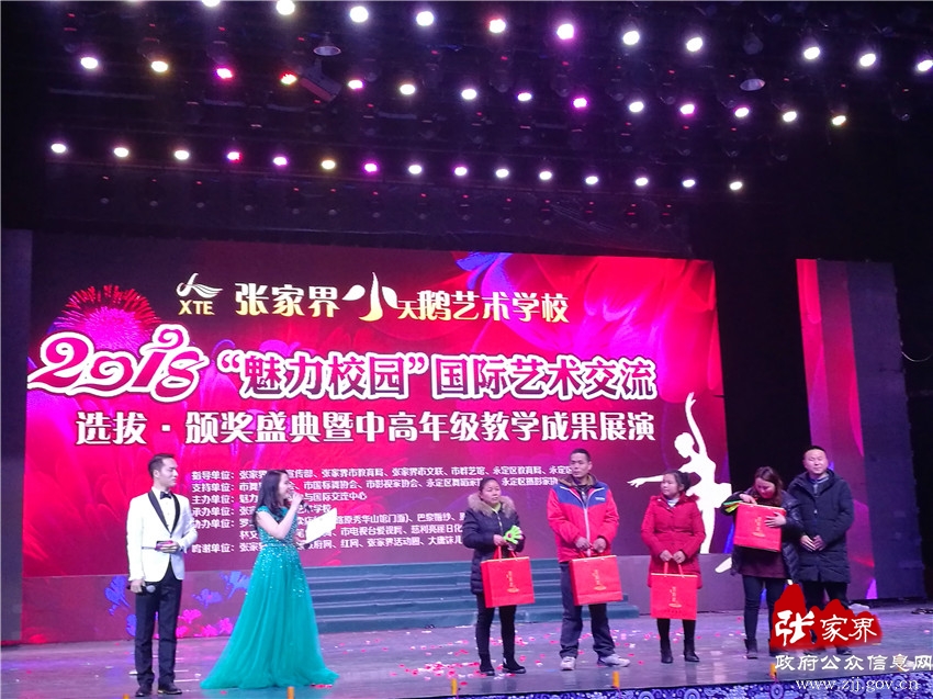 1月14日,张家界小天鹅艺术学校举办2018魅力校园国际艺术交流选拔颁奖盛典暨中高年级教学成果展演活动晚会。